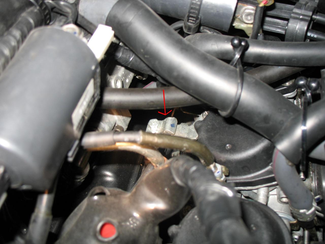 Pour décrocher le cable à l'autre bout, il faut lever le reservoir, il y a juste une vis à retirer sur l'avant de celui-ci, remarquez mon système de blocage pour le reservoir (il est breveté